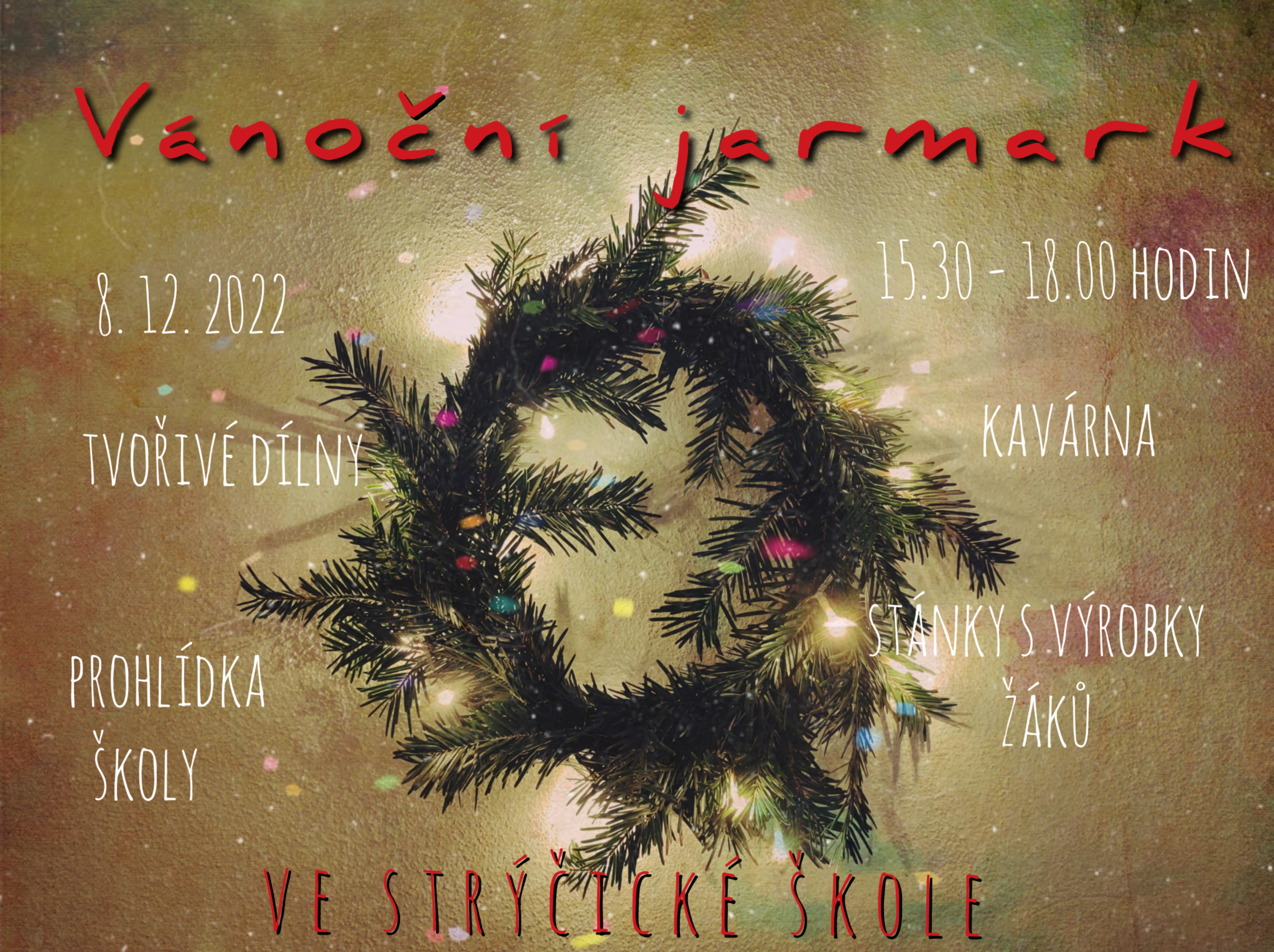 Pozvánka na Vánoční jarmark v ZŠ Strýčice 8.12.2022, 15.30-18.00 hod